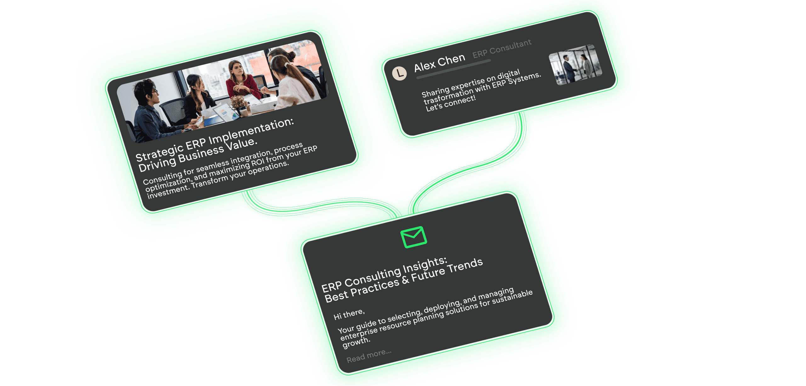 Yes. We connect with Salesforce, HubSpot, Pipedrive, and 50+ other platforms. Data flows automatically, and content publishes directly to your preferred channels.